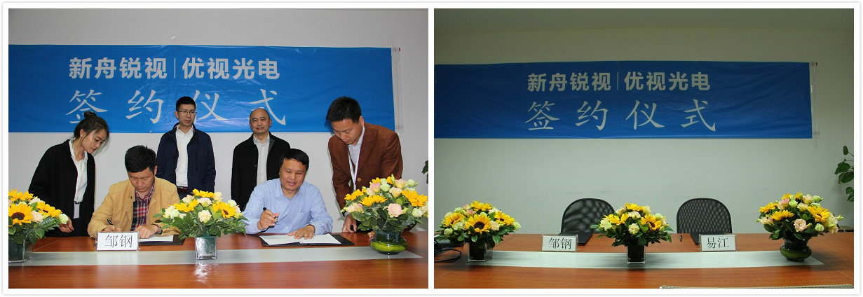 2018年3月26日,成都新舟銳視科技有限公司與成都優視光電技術有限公司在成都天府軟件園簽訂戰略合作框架協議。成都新舟銳視科技有限公司總經理鄒鋼,成都優視光電技術有限公司總經理付承等領導親臨簽約現場,共同見證并進行了簽約儀式。